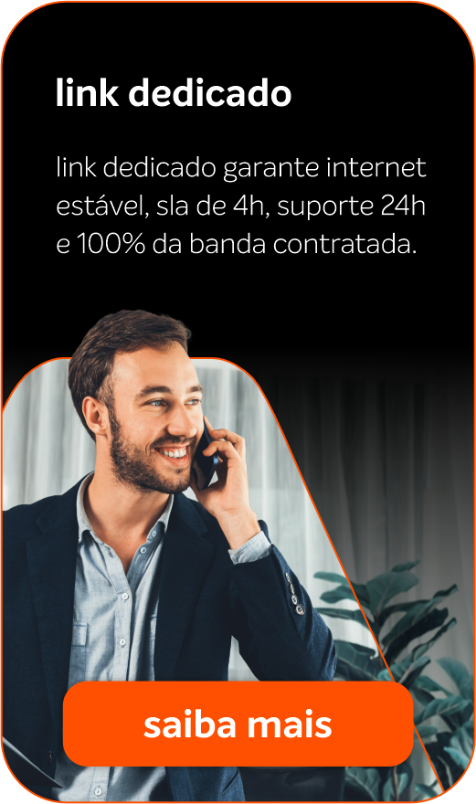 o link dedicado é um serviço de internet que oferece um SLA (Acordo de Nível de Serviço) de 4 horas e suporte telefônico 24 horas por dia. é a escolha ideal para empresas que não podem ficar sem conexão e, em caso de problemas, precisam de uma solução rápida para minimizar possíveis prejuízos. o serviço garante 100% da banda contratada, tanto para download quanto para upload.